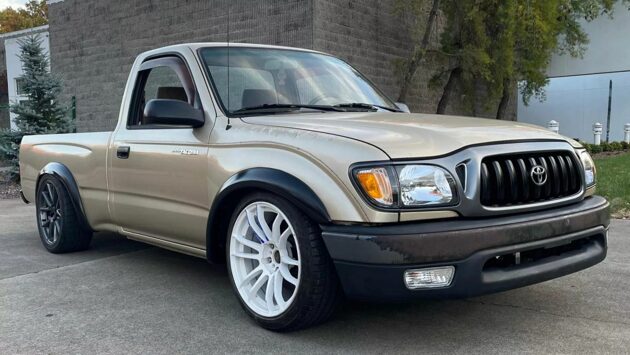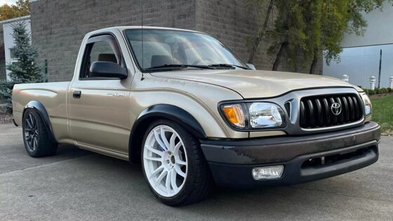 Автолюбитель из США выставил на продажу на Cars&Bids полностью электрическую Toyota Tacoma 2002 года выпуска. В последний раз, когда мы проверяли, ставка колебалась на минимальном уровне в 4500 долларов. Тюнер удалил оригинальный двигатель и поставил на его место мотор задней оси от Tesla Model 3 Performance. Он также приобрел тормоза Tesla для задних колес и тормоза Cadillac для передних.Емкость аккумулятора не уточняется, но в листинге указано, что ее должно хватить на запас хода 241–281 км. Что еще интереснее, старый грузовик теперь достигает скорости 97 км/ч за четыре или пять секунд – почти вдвое быстрее, чем оригинал. Беглый взгляд на проект показывает, что работа сделана солидно: порт зарядки аккуратно расположен за дверцей топливного бака, в салоне установлено новое цифровое головное устройство, а передачи переключаются кнопками на консоли. Несоответствующие колеса — наша единственная серьезная проблема. Это и неизвестный общий пробег.