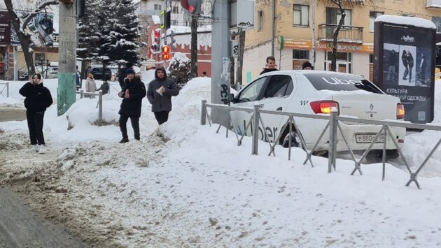 В субботу, 27 января, в центре Пензы, на улице Кирова, водитель такси застрял на тротуаре.