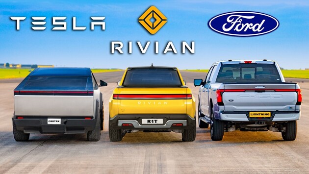 Видео: электропикап Tesla сразился в гонке по прямой против конкурентов от Ford и Rivian