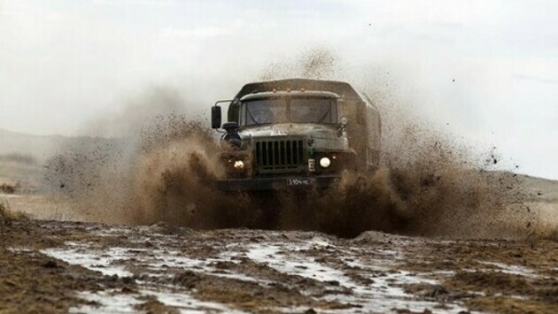 В марш-броске по бездорожью участвовали 60 «Уралов», КамАЗов и УАЗов, стоящих на вооружении в подразделениях флота.