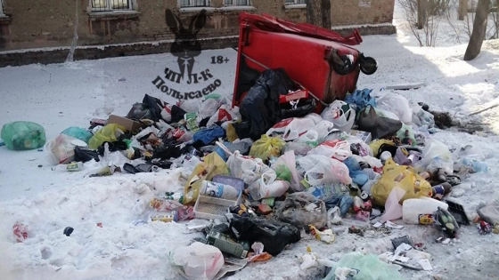 Перевернутый мусорный бак разгневал жителей Кузбасса. Очевидцы поделились кадрами.