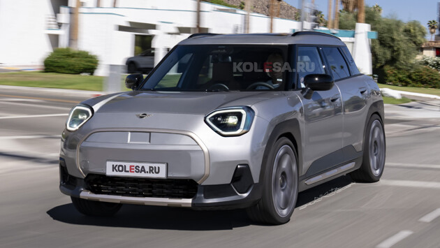 Кроссовер сохранит самую яркую деталь передней части — многоугольные фары и широкой светодиодной полосой по периметру, при этом начинка их центральной части станет проще. Сохранятся и очертания решётки радиатора — точнее, её имитации, ведь автомобиль будет электрическим. Её внутренняя часть также будет изменена по сравнению с концептом, а сверху появится слегка углублённый прямоугольник, который, скорее всего, представляет из себя радар активного круиз-контроля. Практически без изменений угловатые колёсные арки и дверные ручки клавишного типа, как на многих других новинках Mini и BMW. В отличие от концепта с его безрамочными дверьми, серийный кроссовер получит двери с оконными рамками. Как и в случае с передней оптикой, фонари полностью сохранили свою форму, разве что графика светодиодов, имитирующих британский флаг, станет немного иной.