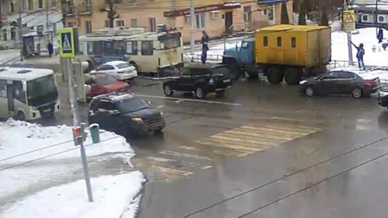 Провода оборвались прямо перед остановкой общественного транспорта. Троллейбус вынужден остановить движение. На месте уже работает аварийно-ремонтная бригада.