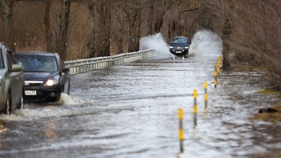 Вода подступает к федеральной трассе у Черняховска, а в Калининграде вновь затопило дорогу в Прегольский