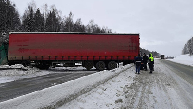 "На 262-м км автодороги Пермь - Екатеринбург Нижнесергинского района движение в сторону Перми временно перекрыто для всех видов транспорта в связи с ДТП. По предварительным данным, водитель грузовой автомашины не справился с управлением и допустил занос прицепа", - отметили в пресс-службе.