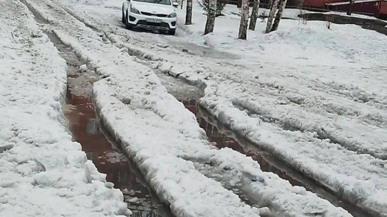 Пользователь социальной сети Telegram поделился фотографиями, снятыми в Осинниках. На кадрах местный житель запечатлел двор жилого дома, дороги которого покрыты рыхлым снегом и водой. Теплая погода вызвала активное таяние осадков.