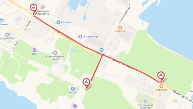 Движение транспорта по Кронштадтскому шоссе ограничат до 20 мая