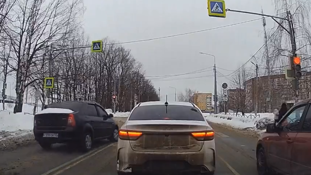 В Рязани Renault Logan проехал по встречной полосе на «красный»