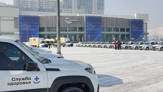 В 19 территорий Красноярского края отправились 42 новых автомобиля отечественного производства. Также три мобильных комплекса (передвижной флюорограф, маммограф и передвижной ФАП) уехали в Минусинск, Емельяновский район и Канскую межрайонную больницу. Все машины приобретены по программе модернизации первичного звена в рамках национального проекта "Здравоохранение", инициированного президентом России.
