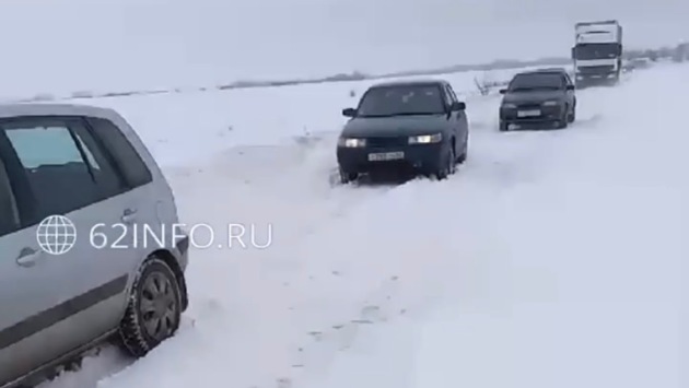 Заснеженная дорога стала причиной затора на трассе Ухолово - Ряжск