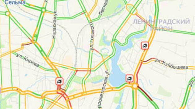 Движение затруднено в районе площади Победы и на улице Невского. На последней, как отмечают автомобилисты, машины попали в ДТП возле кольца на Василевского и у поворота на Сержантскую. Общая дорожная ситуация в городе оценивается в 4 балла.
