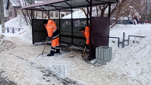 Плотный снежный покров также убирается с подходов к пешеходным переходам и остановочных площадок. Здесь в основном применяется ручной труд. В ночное время, когда фиксируются минусовые температуры, подрядчики продолжают противогололедную обработку дорог и тротуаров.