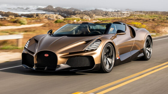 Под капотом «Мистраля» ставится 8,0-литровый бензиновый двигатель W16 с четырьмя турбокомпрессорами, который развивает 1600 л.с. и 1600 Нм крутящего момента, фактически повторяя характеристики купе Chiron Super Sport. Динамику до «сотни» с таким мотором в Bugatti не уточняют, но известно, что максимальная скорость W16 Mistral составляет 420 км/ч.