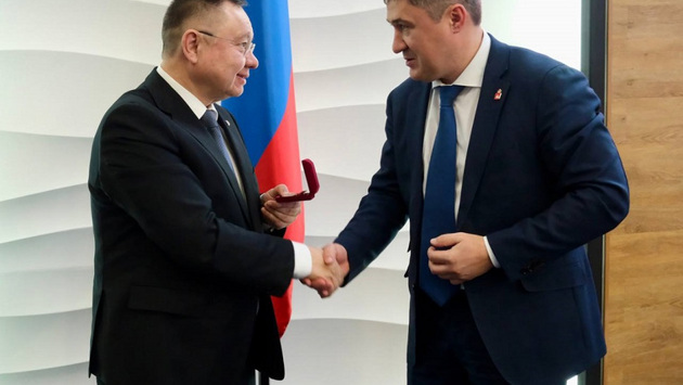 Губернатор Пермского края Дмитрий Махонин вручил юбилейную медаль федеральному министру Иреку Файзуллину. Об этом глава региона рассказал в своем telegram-канале.