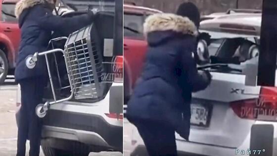 Темнокожая автовладелица решила украсть продуктовую тележку и попыталась разместить её в багажнике своего транспортного средства.