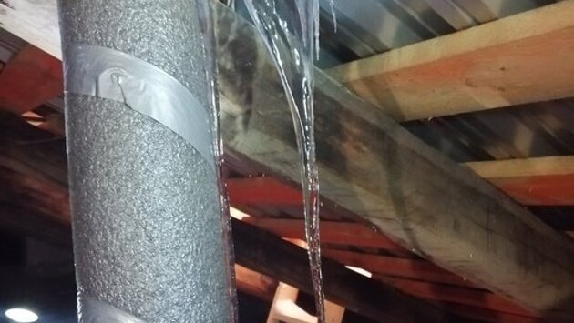 В результате, после потепления, снежные пласты начали скатываться вниз и повредили установленные трубы вентиляции.