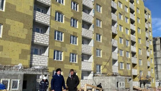Восьмиэтажный дом в Заре, предназначенный для переселенцев из аварийного жилья, готов на 85%, хотя по срокам его должны ввести в эксплуатацию уже 15 марта. Прокуратура проследила за ходом работ.