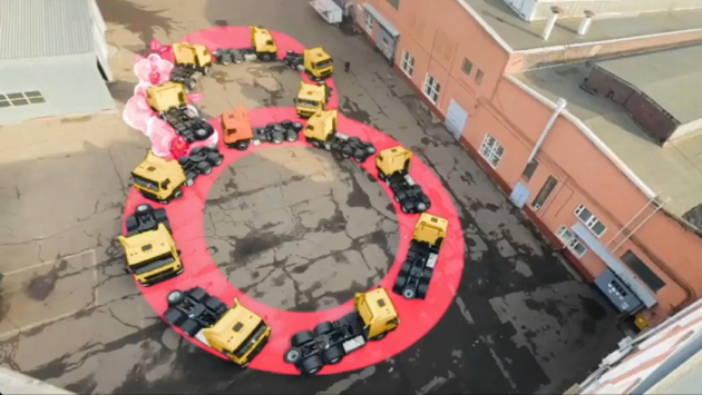 Минский автозавод поздравил сотрудниц «восьмёркой» из седельных тягачей