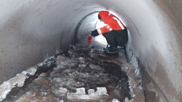 Также рабочие очищают отверстия и русла водопропускных труб от льда, снега и мусора.