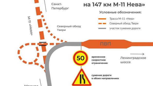 На транспортной развязке трассы М-11 «Нева» под Тверью изменили схему движения