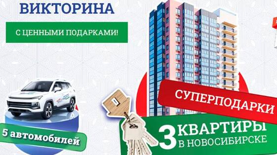К распределению главных подарков викторины — квартир, допускаются все участники викторины, за исключением уже получивших один из главных подарков. Сегодня, 16 марта, распределение подарков будет проходить в 21:00. Следите за информацией в группе https://vk.com/nskviktorina или на официальном сайте викторины.