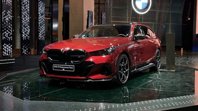 На эксклюзивной выставке BMW Welt демонстрируется BMW i5 M60 Touring с большим количеством деталей M Performance, окрашенный в яркий Fire Red. Внешний вид BMW i5 M60 Touring свидетельствует о стремлении компании BMW еще больше улучшить внешний вид своих автомобилей с помощью карбоновых деталей.