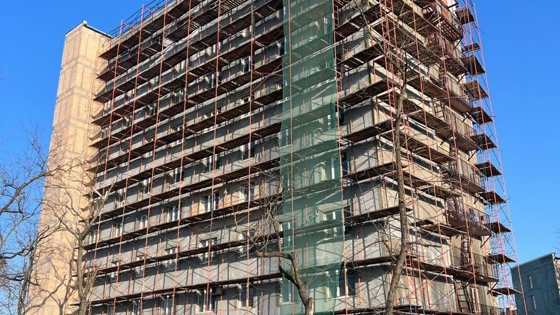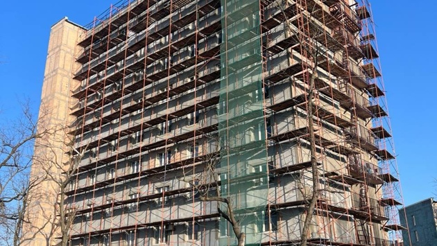 Куряне восстанавливают многоэтажный дом в Мариуполе