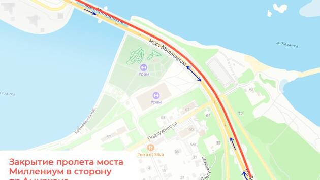 С 1 апреля половина Миллениума закрывается на очередной ремонт. Теперь будут ремонтировать вторую часть — от Вишневского до Амирхана. В планах: восстановить гидроизоляцию, заменить все слои дорожного покрытия, установить подсветку (чтобы мост весь сиял вот так), отремонтировать пролетные строения, опоры и другие элементы. Как и в прошлом году, половина моста временно станет двухсторонней, сообщили в мэрии. Схема: мэрия