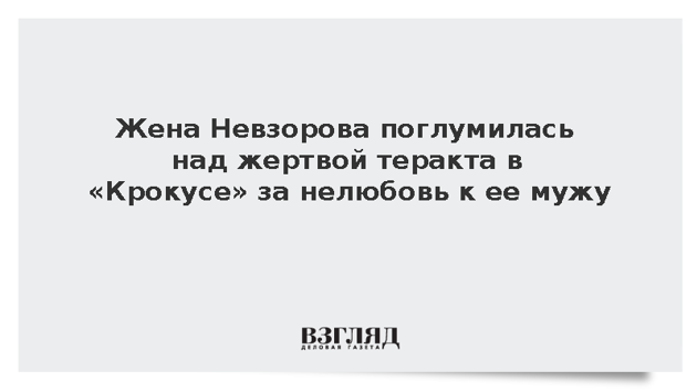 Жена Невзорова поглумилась над жертвой теракта в «Крокусе» за нелюбовь к ее мужу