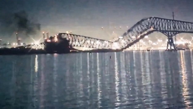 По данным ведомства, автомобильное мостовое строение, которое носит имя Фрэнсиса Скотта Ки обрушилось из-за столкновения с ним контейнеровоза Dali.