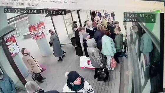 На кадрах видно несколько человек, стоящих на остановочном комплексе. В момент ДТП они готовились к посадке в автобус. Затем часть людей, увидев летящий в остановку транспорт, побежала.