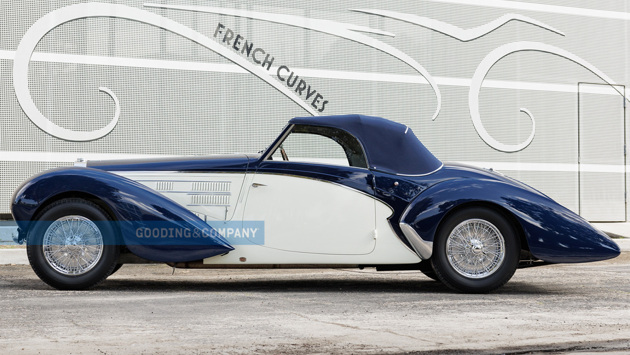 Винтажный родстер с открытым кузовом, компрессорным двигателем и кузовом работы швейцарского ателье Gangloff построили всего в двух экземплярах. За свою историю раритетный спорткар с дизайном в стиле ар-деко сменил множество владельцев. Последние хозяева провели полную реставрацию автомобиля, вернув ему практически исходное состояние.