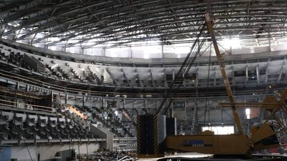 Первый слой кровли Ледового Дворца на Стрелке готов на 90%