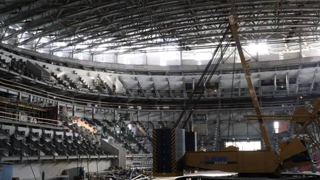 Первый слой кровли Ледового Дворца на Стрелке в Нижнем Новгороде готов на 90%, сообщил губернатор Глеб Никитин в своем Telegram-канале. Стены и перегородки из газобетона возвели уже на 95%. Сейчас рабочие прокладывают инженерные сети, монтируют настилы трибун и отделывают подтрибунные помещения. Напомним, Ледовую арену начали строить в Нижнем Новгороде в прошлом году. Ее площадь составит 70 тысяч квадратных метров. В комплексе расположатся многофункциональная хоккейная площадка с трибунами на 12 тысяч зрителей, малая ледовая арена на 200 зрителей, спортивный и тренажерные залы. Почти 4,3 млрд рублей потратят на строительство ледовой арены в Нижнем Новгороде в 2023 году. В 2024 году на проект хотят выделить 2,76 млрд рублей: 847 миллионов — из бюджета страны и 1,9 — из казны области. В 2025 на строительство планировали потратить 2,6 млрд рублей. Таким образом, за три года потратят около 9,6 млрд рублей. Завершить все работы изначально планировали в марте 2025 года, однако работы ведутся с опережением графика.
