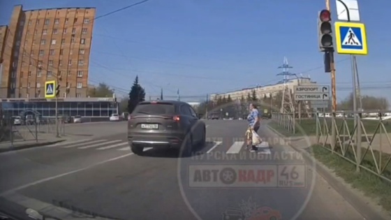 В Курске автомобилист едва не сбил женщину с ребенком на переходе