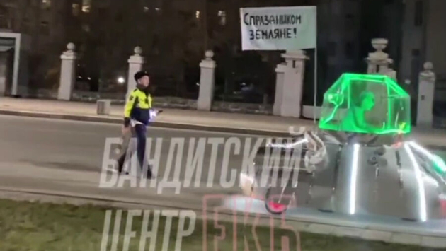 – Минувшим вечером в центральной части столицы Урала сотрудники Госавтоинспекции проводили тотальные проверки водителей на трезвость, не остался не замеченным и водитель "космического" транспортного средства, который был одет в костюм пришельца, – говорится в сообщении областной ГИБДД.