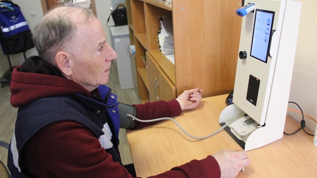 - Здравствуйте-здравствуйте! - говорит водитель с 47-летним стажем Владимир Шатов, присаживаясь на стул перед настольным прибором, похожим на банковский терминал в миниатюре. - Теперь это мой ежедневный ритуал: захожу в комнату предрейсовых осмотров, приветствую электронного доктора. Это он меня в путь отправляет, с ним надо дружить.
