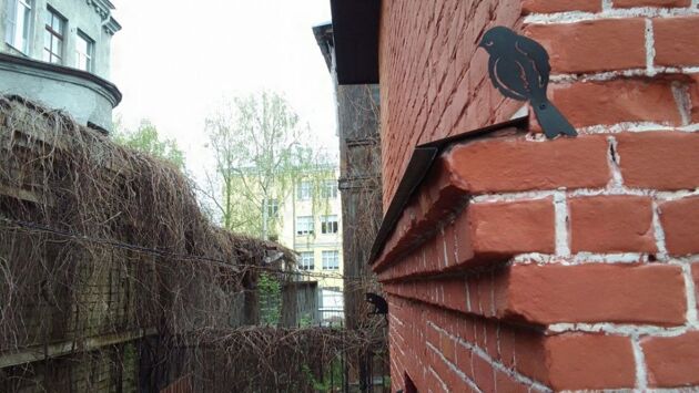 Также во дворе прихода можно встретить гоняющего маленькую птичку кота, и других пернатых, которые спрятались повыше от пушистого хищника.