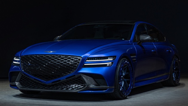 На автосалоне в Пекине корейская марка показала седан G80 EV Magma Concept — ему занизили подвеску и расширили колею, а также добавили аэродинамических элементов из углепластика. В отличие от GV60 Magma, который был выкрашен в оранжевый цвет, для новинки выбрали синий колер Acme Blue. По словам Genesis, это символизирует не электрическую силовую установку, а синее пламя, которое имеет более высокую температуру, чем красное или оранжевое.