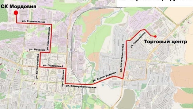 Теперь от остановки СК «Мордовия» автобусы поедут по улицам: Строительная – Пролетарская – Васенко с выходом на улицу Ботевградская. При этом дальнейший маршрут остался без изменений.