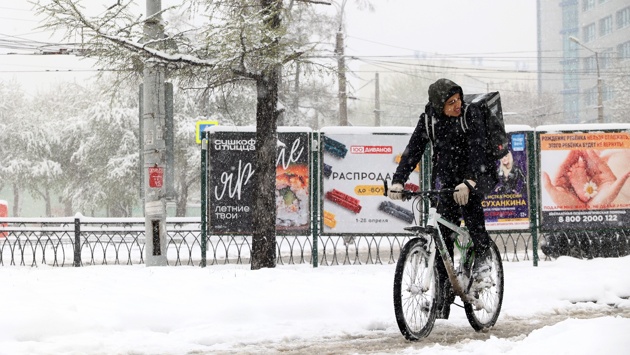 Накануне столица Урала пережила аномальный снегопад: за последние двое суток здесь выпало 34 миллиметра осадков - 75 процентов месячной нормы, при этом температура опускалась до -4 градусов.