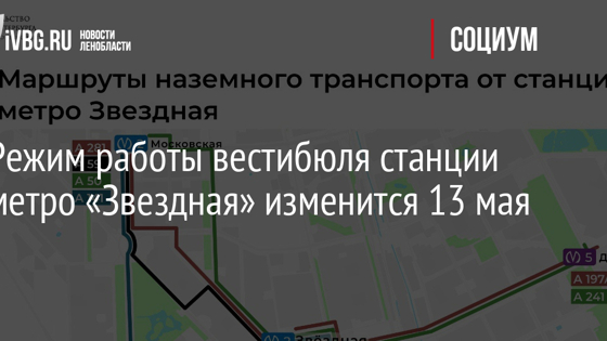 Режим работы вестибюля станции метро «Звездная» изменится 13 мая