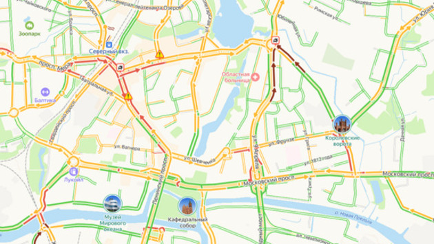Заторы сформировались на всех основных магистралях города. Из-за ДТП, произошедшего на пересечении Ленпроспекта и улицы Черняховского, собралась пробка от драмтеатра до ТЦ «Калининград плаза».