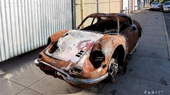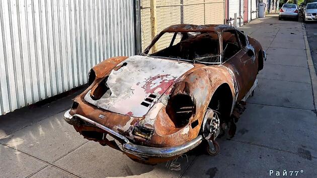 Считающийся самым дешёвым на рынке сгоревший Ferrari Dino 1972 года выпуска выставлен на продажу за 150000 долларов (13 млн 745 тыс.руб.)