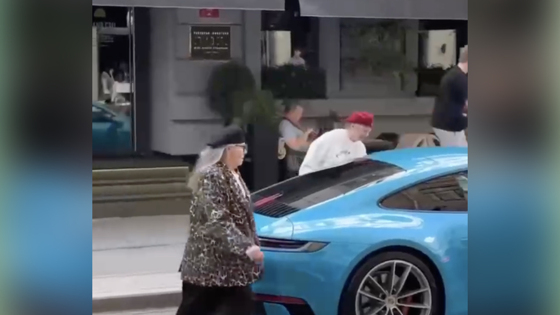 На кадрах две женщины пенсионного возраста в дизайнерской одежде прогуливаются по улице. Затем они направляются в сторону дорогого спорткара голубого цвета и садятся в него. Автомобиль и самих женщин снимают на камеру прохожие. «У нее кроссовки какие! У меня даже таких нет», — произносит оператор за кадром.