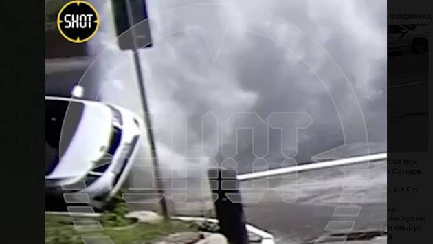 В Самаре столб кипятка прорвался из-под земли и опрокинул машину. Кадрами случившегося делится Telegram-канал Shot.