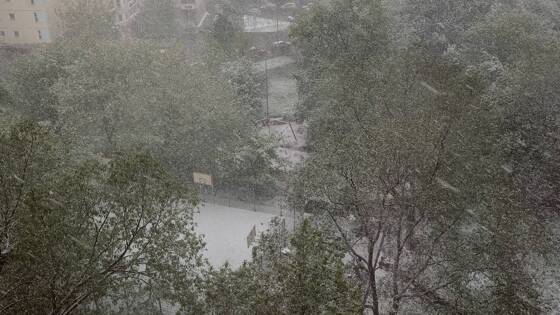 Очевидцы поделились кадрами, на которых запечатлены заваленных снегом деревья. Толстый слой снега покрывает землю и деревья. Из-за сильных осадков значительно снизилась видимость. Автор ролика отмечает, что летняя погода наверняка нескоро придет в его регион.
