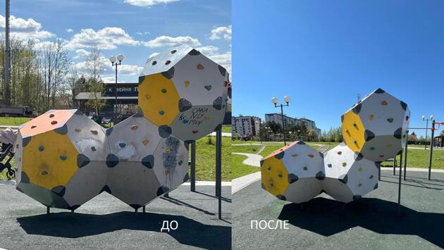 «Молодые художники ищут самореализацию, но не всегда там, где это можно делать. В этот раз наши специалисты очищали Рождественский парк. На всех общественных пространствах устанавливаются камеры видеонаблюдения, нарушителей фиксируем и передаем в органы правопорядка. Сегодня не поймали — повезло, завтра удача может покинуть и придется нести ответственность за свои деяния», — написал на своей странице в социальной сети и. о. Мэра Вологды Андрей Накрошаев.
