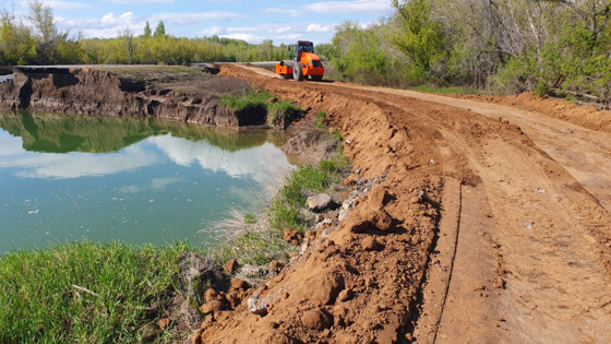 В Беляевском районе после ухода воды на участке трассы «Беляевка-Желтое» сделали временную земляную насыпь для проезда транспорта.