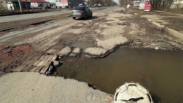 Этот участок проспекта Кирова служит въездом в город, но очень сильно разбит. Из-за больших ям, которые с трудом могут проехапть даже фуры, в этом месте постоянно возникают пробки. Кроме того, тут часто можно видеть машины, ломающиеся из-за плохого состояния дороги.